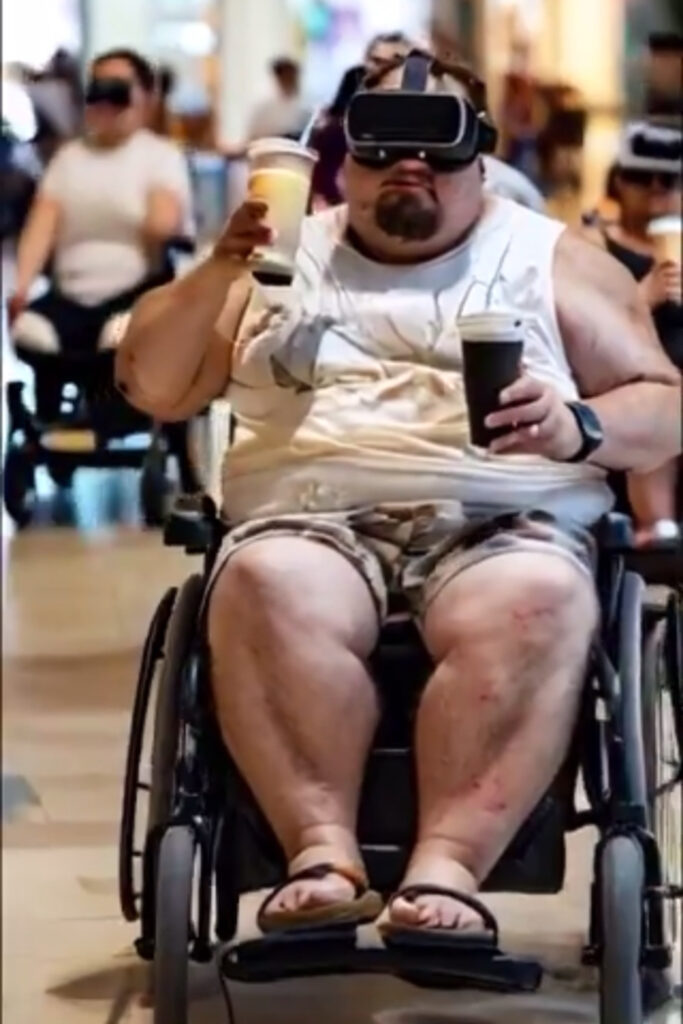 周辺に注意したり、周囲を気遣うこと、他人から自分がどううつるかという客観的視点の決定的な欠如は恐怖すら感じます。また、誰かとの会話中ということもあるようですが、ほとんどは「スマホ」を使った「創造的な活動」ではなく、ゲームや何かを視聴する一方の完全に「受動的な娯楽の享受」に徹しているようです。どうであれ、とにかく「みっともない」ですよ。人がロボットのように 与えられ続ける他人からの様々な情報に加え、AIにより得られる膨大な知識、さらには現実と見分けがつかなくなるほどの仮想現実*、さらにはVRを用いた仮想空間、それらがもたらすのは、「無思考」と「無知」、そして「思考力」の低下、「知恵」の縮小と「独創性」の消失、「対人関係」の消滅、つまり「人らしさ」の喪失ではないでしょうか。